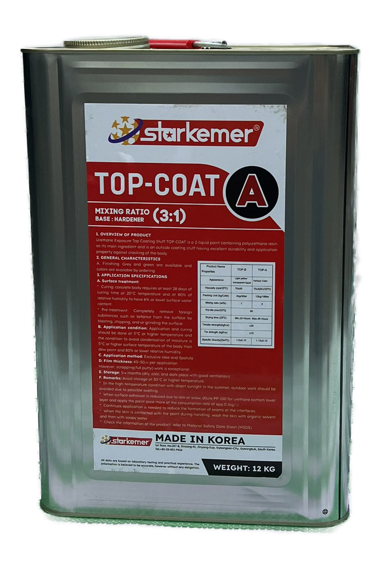 Sau khi thi công lớp chống thấm PU WP-210 từ 7-10h chúng ta có thể thi công lớp phủ kháng Uv - top-coat A+B. Đây là Top-coat 2 thành phần có quy cách đóng thùng là 12kg và 4kg, pha trộn theo tỉ lệ 3:1.