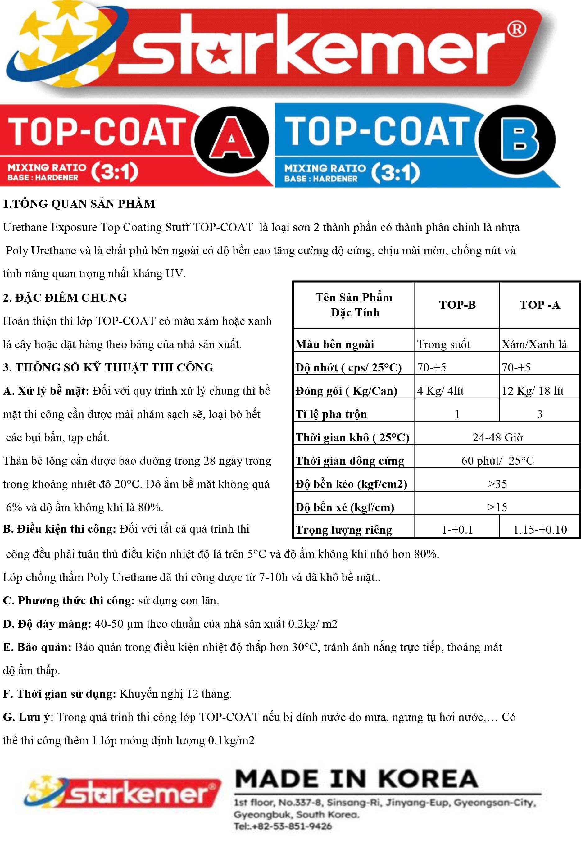 G. Lưu ý: Trong quá trình thi công lớp TOP-COAT nếu bị dính nước do mưa, ngưng tụ hơi nước,… Có